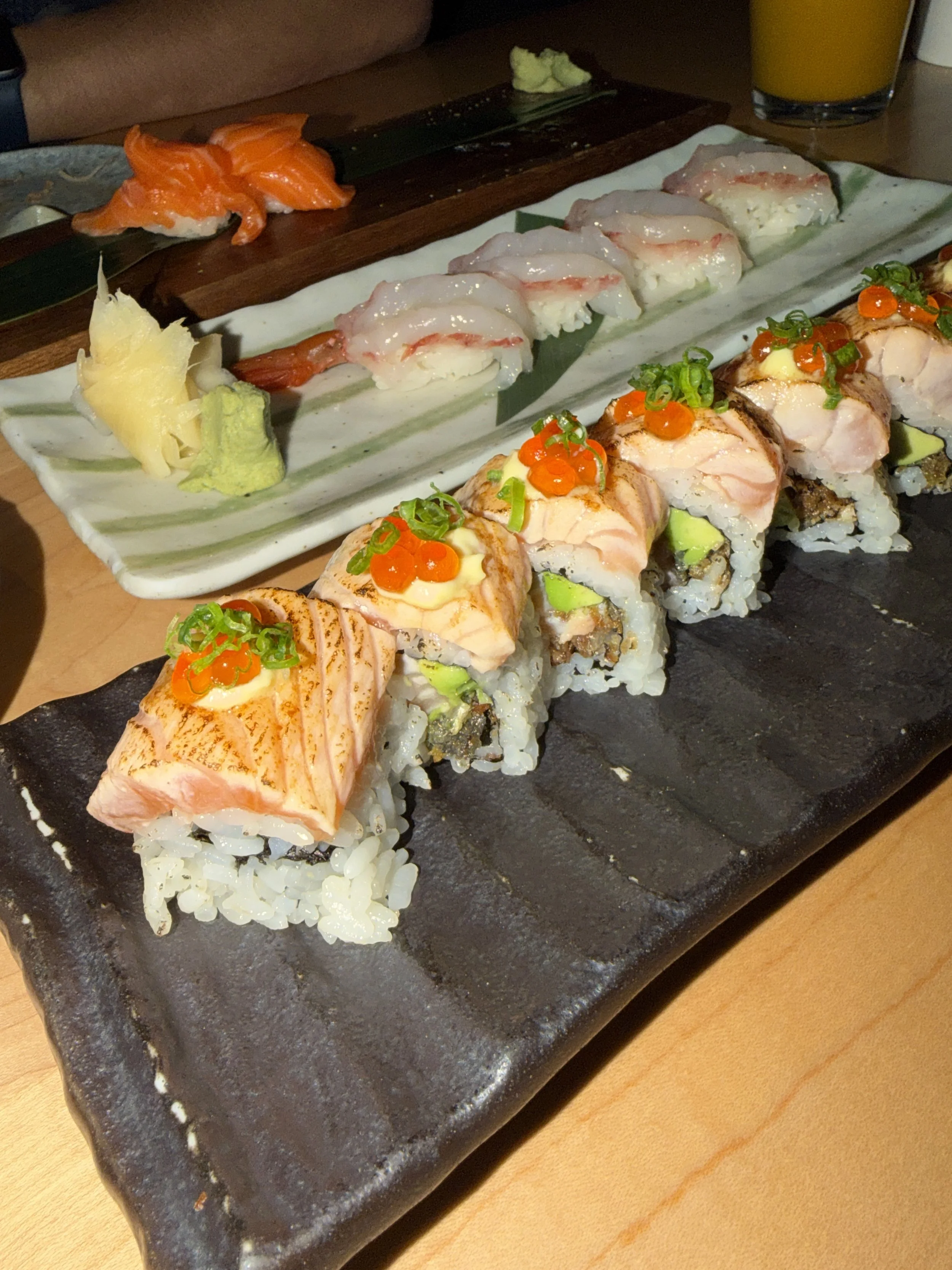 Her standout favorite of the evening was the salmon belly nigiri. The salmon was buttery, fresh, and quite literally melted in her mouth. It was so good, she had to order more. “Whatever you do,” she said, “don’t let them take the salmon belly nigiri off the menu.”